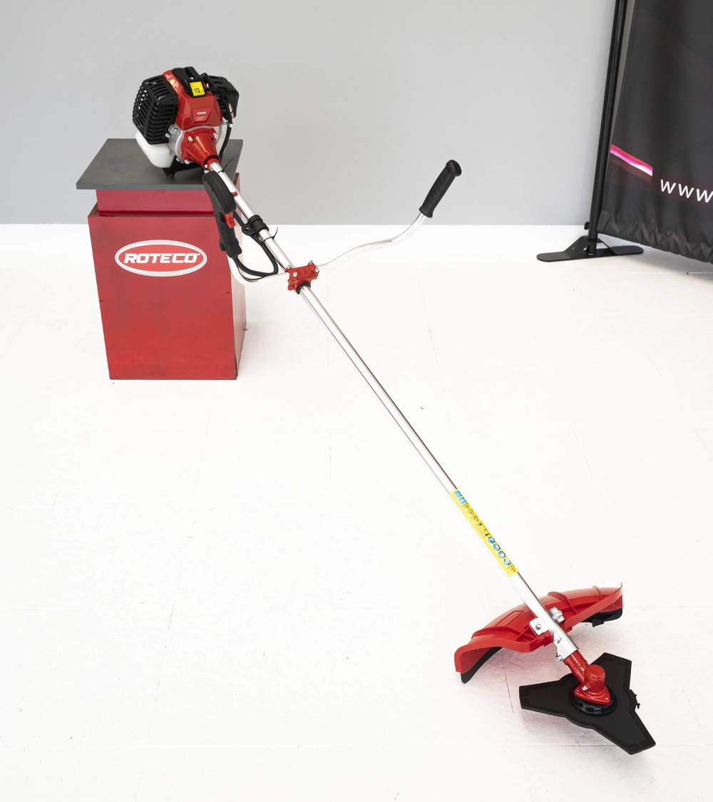 MAQUINARIA PROFESIONAL Desbrozadora profesional Roteco BC-415 Ficha técnica Motor: 41,5 CC Carburador diafragma *Sin carenado Transmisión: Barra 28 MM Cabezal nylon Disco grass